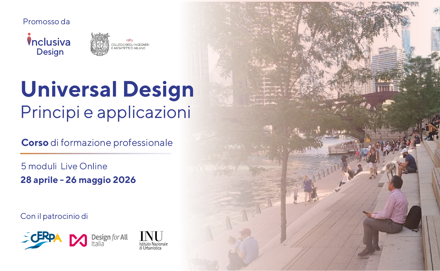 Un percorso per integrare accessibilità e inclusione in spazi, servizi ed esperienze attraverso gli approcci Universal Design e Design for All. Il corso, promosso da Inclusiva Design e il Collegio degli Ingegneri e Architetti di Milano, introduce un cambio di prospettiva: dalla conformità normativa alla qualità dell’esperienza, dalla gestione delle barriere alla progettazione inclusiva come scelta consapevole. Attraverso casi reali, esercitazioni e momenti di confronto, il percorso offre strumenti per integrare l’inclusione nei processi decisionali e nella pratica professionale.